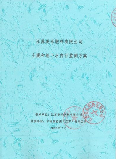 江蘇益農肥料集團有限公司公司土(tǔ)壤和(hé)地(dì)下(xià)•₽∑水(shuǐ)自(zì)行(xíng)監測方案公示