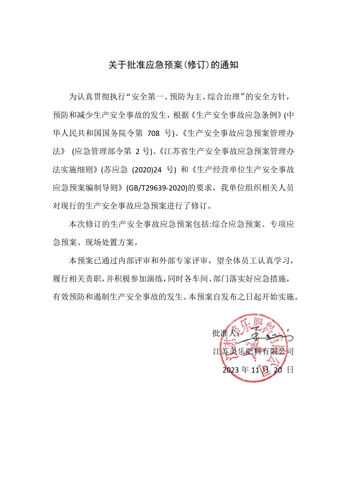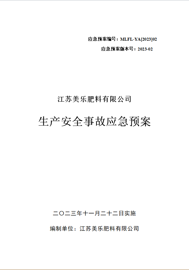 江蘇益農肥料集團有限公司安全生(shēng)産事(shì)故應急∏<₹✔預案